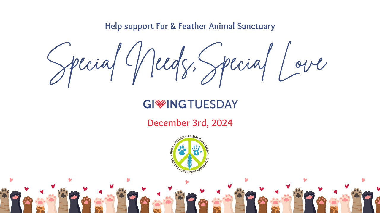Your support on Giving Tuesday will transform the lives of countless animals at Fur & Feather Animal Sanctuary, a safe haven for furry friends in need.