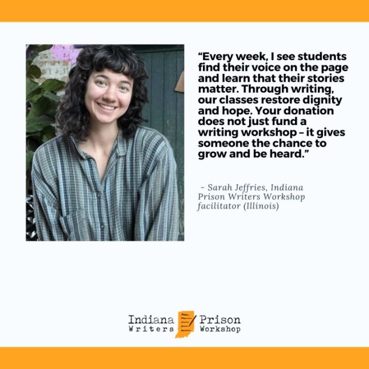 Dear Supporters, With just ten more days remaining, I wanted to share a heartfelt thank you. Through Jan. 4, donations to the Indiana Prison Writers Workshop are being matched dollar for dollar by the Elevate Prize Foundation and your generosity has already made a meaningful impact. Because of YOU, incarcerated writers are finding space to heal, reflect, and imagine new futures. As one of our students shared: “This class gave me a voice again. For the first time in years, I felt seen, not as my crime, but as a human being with a story worth telling.”