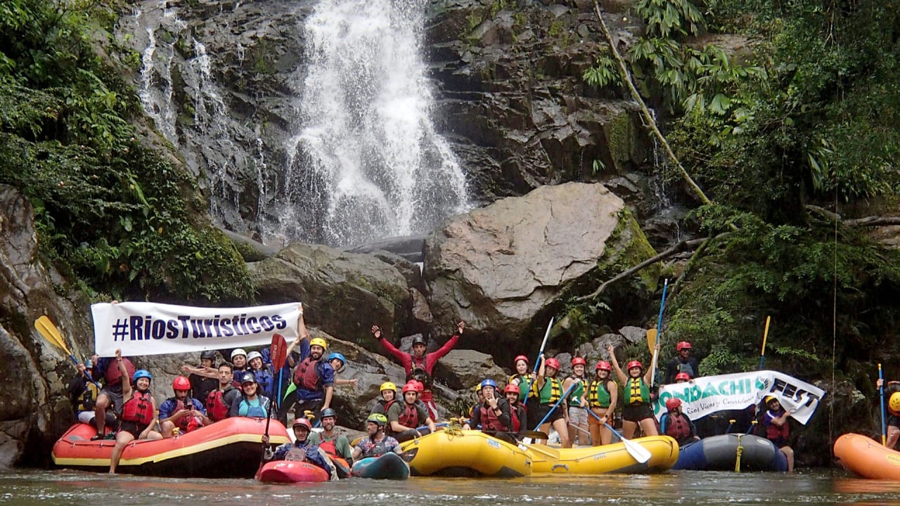 The Jondachi Fest is our main community outreach activity to raise awareness about watershed issues and promote the protection of free-flowing river corridors. The event receives widespread participation and ample media attention. The river festival includes an educational watershed forum, the Class V Upper Jondachi Race, a group descent of the Class IV Jondachi-Hollín Rivers, a kid’s painting contest, films, a triathlon, and activities for all ages with river trips, a community fair, cultural program, as well as downriver flatwater races for kids and beginner kayakers, and traditional dugout canoes. Other cultural and ecotourism activities are also promoted throughout the Jondachi-Hollín-Misahuallí-Napo watershed corridor to help get more people on board with protecting this outstanding resource as a model for the protection of other free-flowing riparian corridors, which are strategic for the conservation of freshwater biodiversity as well as paddle sports destinations.