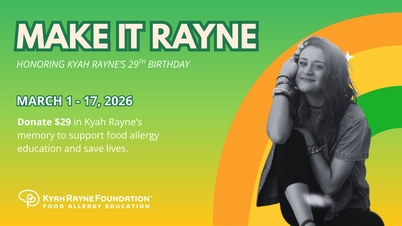 Make It Rayne is an annual campaign created in Kyah’s memory to transform remembrance into action. Food allergy reactions are predictable and preventable, and education is one of the most powerful tools we have to save lives.