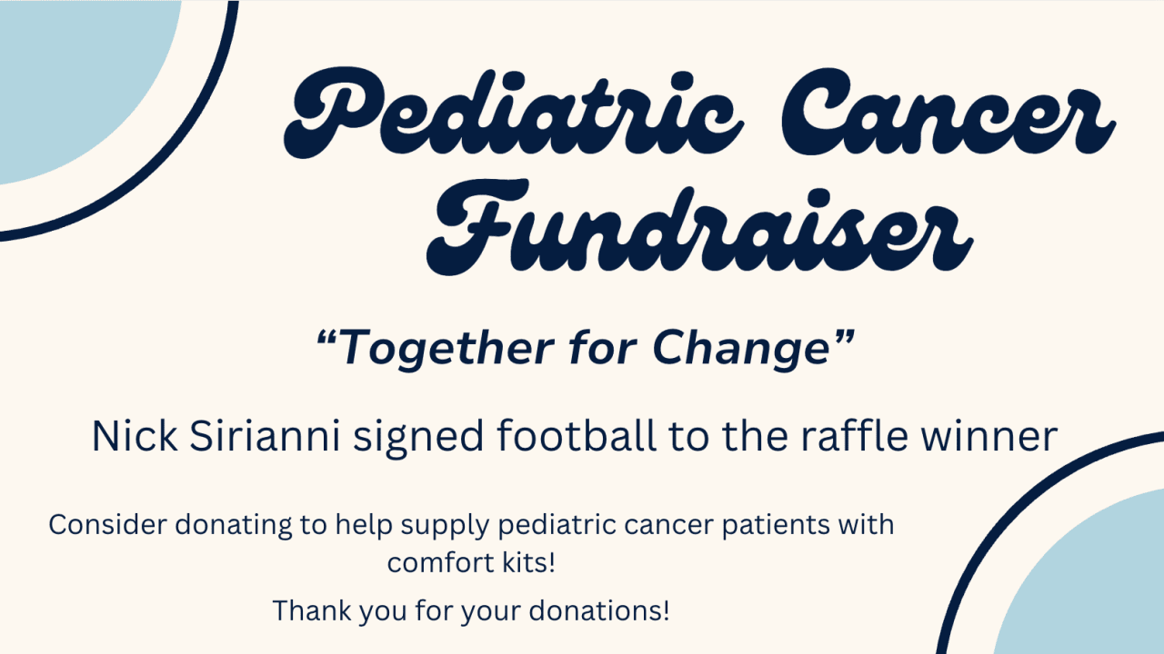 Our goal is to raise money and awareness for childhood cancer, specifically Ewing's Sarcoma. This type of pediatric cancer is severely underfunded and affects children aging from 10-20. We partnered with the Charlie Landers Foundation and will use your money to create "Comfort Kits" that will be sent to Ewing's Sarcoma patients at CHOP. Additionally, every donor will be entered in a raffle for the chance to win a signed football from Superbowl champion Philadelphia Eagles head coach, Nick Sirianni. For more info on Comfort Kits, please click this link: https://www.thecharlielandersfoundation.org/comfort-kits